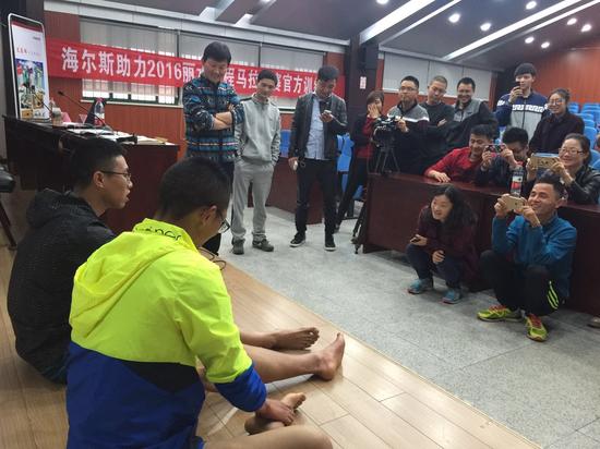 課上,方慶從穿戴裝備、跑前熱身、跑步姿勢(shì)、呼吸飲水等方面細(xì)致講解,帶領(lǐng)跑友進(jìn)行跑前、跑后專業(yè)、規(guī)范的熱身和拉身,著重向大家介紹跑前熱身和賽后拉伸的重要性。同時(shí),周裕民結(jié)合麗馬路線,介紹了如何進(jìn)行賽前準(zhǔn)備、核心力量訓(xùn)練等內(nèi)容。