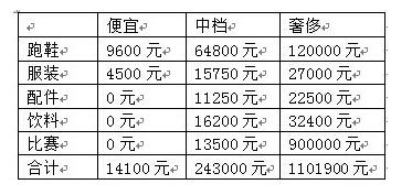 中國跑友也如法炮制,推出了中國版:節(jié)儉型要14100元,普通型243000元,土豪型要1101900元。