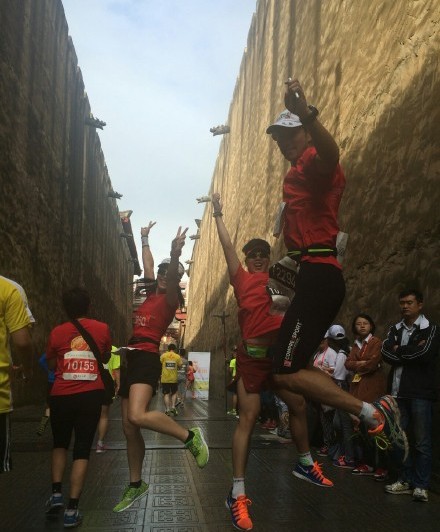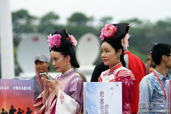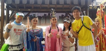 除了美景、明星以外,影視城藝術(shù)團(tuán)還組織了數(shù)百名演員,身著歷朝歷代的服裝或參加比賽,或在沿途為選手們助威,或在終點(diǎn)獻(xiàn)上精彩的演藝節(jié)目。不少參賽選手也“入鄉(xiāng)隨俗”地穿上了各種cosplay服裝。有位跑友就說(shuō):“各種古人在旁邊加油還亂扭啊,笑辟了要...完全不能專心跑步”;另一位跑友解釋說(shuō):“丑的人才問(wèn)跑多快,美的人會(huì)回答嗨不嗨”。